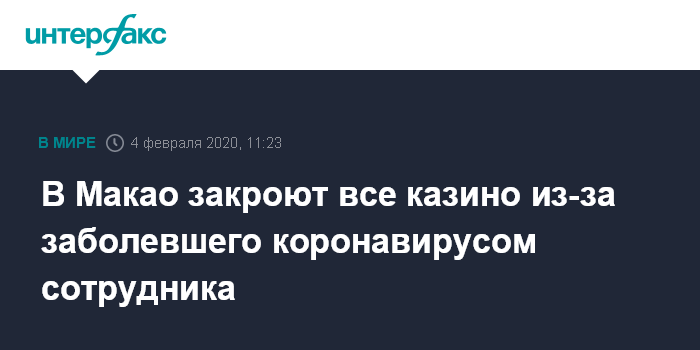 Такие меры принимаются после того, как у одного из работников казино обнаружили коронавирус, отмечает Nikkei Asian Review со ссылкой на власти Макао.