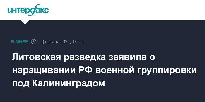 Москва. 4 февраля. INTERFAX.RU - Россия продолжает наращивать военную инфраструктуру в Калининградской области, утверждает литовская военная разведка.