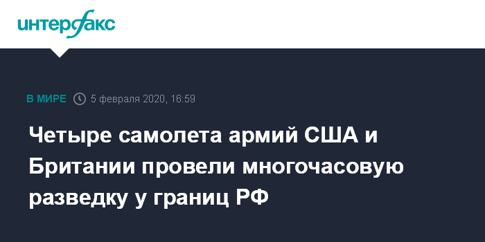 В январе 2020 года американские военные самолеты и дроны несколько раз пролетали у границ РФ. Так, 14 января стратегический разведывательный беспилотник ВВС США RQ-4A совершил многочасовой полет у границ России в регионе Балтики. 15 и 22 января военные самолеты Соединенных Штатов вели разведку близ территории РФ.
