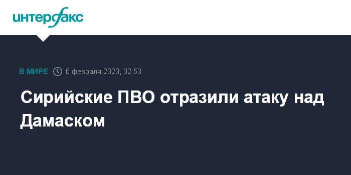 Москва. 6 февраля. INTERFAX.RU - Сирийские ПВО перехватили "вражеские цели" в небе над сирийской столицей, сообщают государственные СМИ.