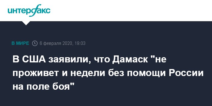 В США заявили, что Дамаск "не проживет и недели без помощи России на поле боя"