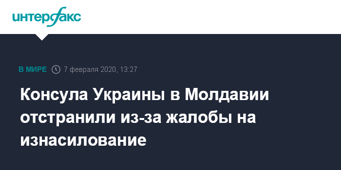 Москва. 7 февраля. INTERFAX.RU - Консул Украины в городе Бельцы (Молдавия) временно отстранен от исполнения обязанностей из-за проверки заявления гражданки Молдавии, заявившей, что консул совершил в отношении нее преступление, сообщила пресс-служба МИД Украины в пятницу в ответ на информационный запрос "Интерфакса".