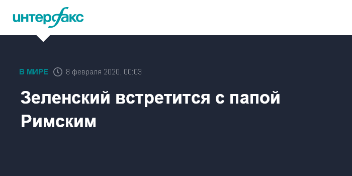 Москва. 8 февраля. INTERFAX.RU - Президент Украины Владимир Зеленский 8 февраля нанесет официальный визит в Ватикан, сообщила пресс-служба главы украинского государства.