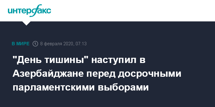 Москва. 8 февраля. INTERFAX.RU - В Азербайджане, где в воскресенье пройдут внеочередные парламентские выборы, в субботу наступил "день тишины".