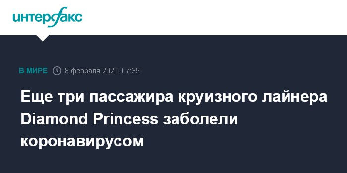 "За последние сутки японская сторона информировала о 3-х заболевших коронавирусом пассажирах судна. Ни у кого из наших граждан вирус не диагностирован", - говорится в сообщении, опубликованном в фейсбуке посольства в субботу.