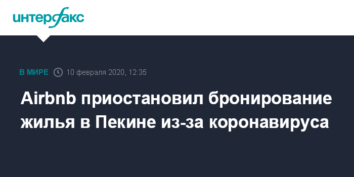 Запрещено бронирование помещений с датами заезда от 7 февраля до 29 февраля для краткосрочной аренды, уточнила компания. Это решение было принято по требованию властей Пекина, выдвинутого в рамках профилактики распространения коронавируса.