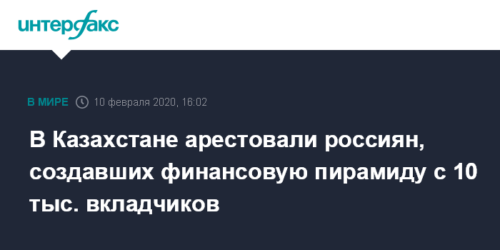 В Казахстане арестовали россиян, создавших финансовую пирамиду с 10 тыс. вкладчиков