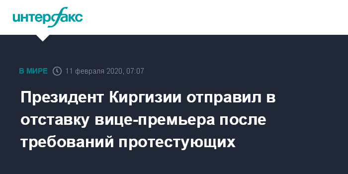 Президент Киргизии отправил в отставку вице-премьера после требований протестующих