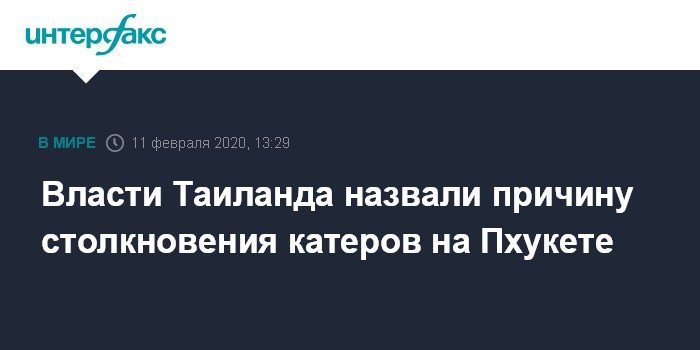 Москва. 11 февраля. INTERFAX.RU - Власти Таиланда считают причиной столкновения туристических катеров у побережья острова Пхукет, повлекшего гибель двух детей из России, превышение скорости одним из капитанов, сообщает во вторник газета The Phuket News.