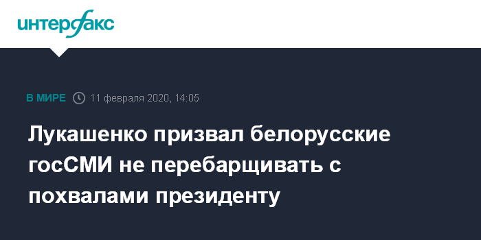 Москва. 11 февраля. INTERFAX.RU - Президент Белоруссии Александр Лукашенко считает белорусские государственные СМИ абсолютно правдивыми, но призвал их не перебарщивать с похвалами главе государства.
