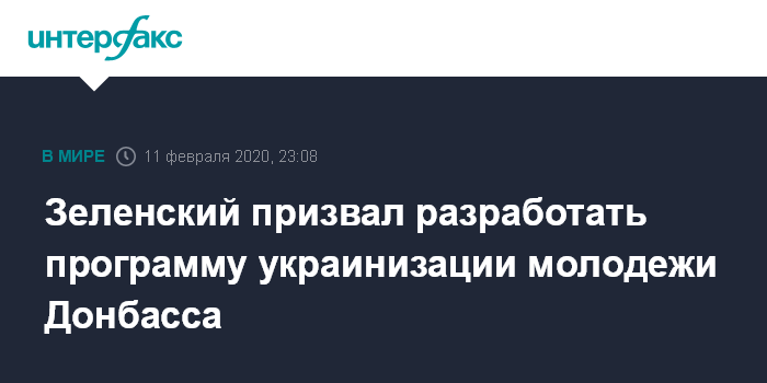 Москва. 11 февраля. INTERFAX.RU - Президент Украины Владимир Зеленский провел совещание по обеспечению молодежи, живущей на неподконтрольных Киеву территориях Донбасса, возможностями получения украинского паспорта и содействию абитуриентам в поступлении в украинские вузы.