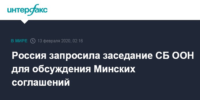 "В связи с пятой годовщиной Комплекса мер по реализации минских соглашений, которая отмечается сегодня, 12 февраля, а также в связи с пятой годовщиной принятия резолюции СБ ООН 2202 (17 февраля) Россия запросила проведение брифинга Совета Безопасности", - сказал он.