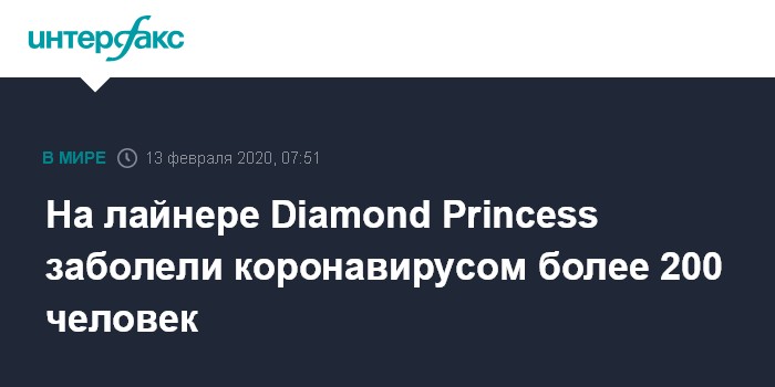 Москва. 13 февраля. INTERFAX.RU - Еще 44 случая заражения коронавирусом зарегистрировано на круизном лайнере Diamond Princess, сообщил Минздрав Японии.