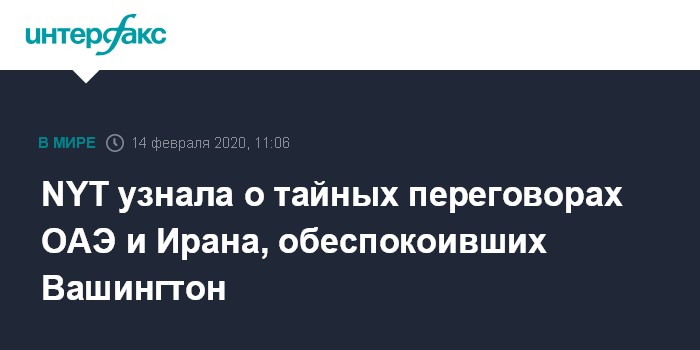 NYT узнала о тайных переговорах ОАЭ и Ирана, обеспокоивших Вашингтон