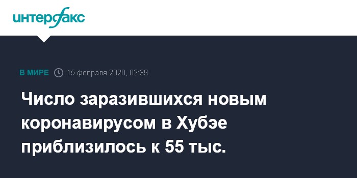 Число заразившихся новым коронавирусом в Хубэе приблизилось к 55 тыс.