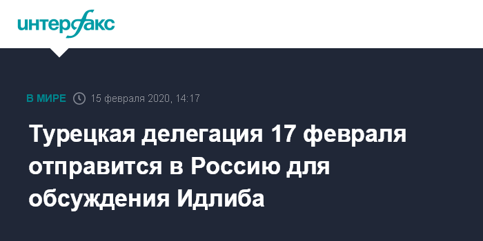 Москва. 15 февраля. INTERFAX.RU - Делегация из Турции 17 февраля отправится в Россию для обсуждения ситуации в сирийской провинции Идлиб, заявил в субботу глава турецкого МИД Мевлют Чавушоглу, чьи слова приводит агентство Anadolu.