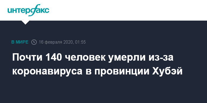 Почти 140 человек умерли из-за коронавируса в провинции Хубэй