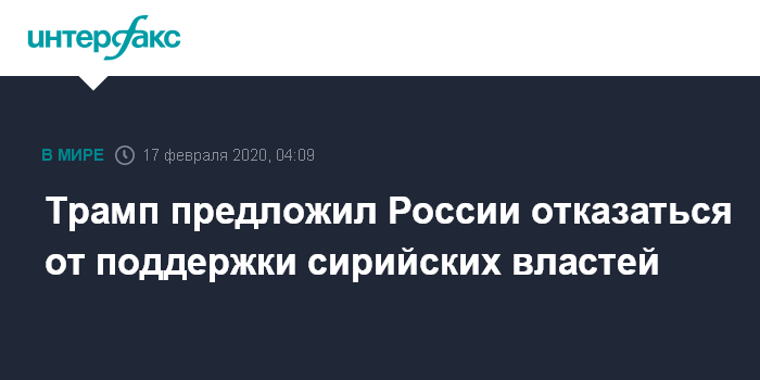 "Президент Трамп заявил, что США хотели бы, чтобы Россия перестала поддерживать злодеяния режима Асада (президент Сирии Башар Асад - ИФ), и высказался в пользу политического решения сирийского конфликта", - говорится в сообщении Дира.