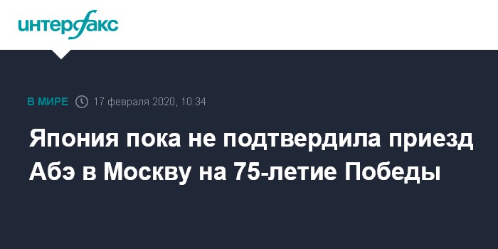 Москва. 17 февраля. INTERFAX.RU - Россия пока не получала официального подтверждения визита премьер-министра Японии Синдзо Абэ в Москву на мероприятия, посвященные 75-летию Победы в Великой Отечественной войне, сообщил в понедельник замглавы МИД РФ Игорь Моргулов.