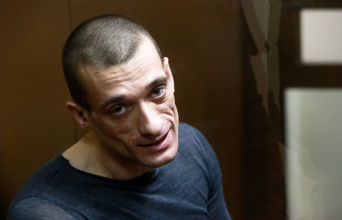 Павленский известен в России перформансами, в основном, связанными с самоистязанием. Одна из его последних акций заключалась в поджоге двери здания ФСБ на Лубянке, за что он был приговорен к штрафу в 500 тыс. рублей.