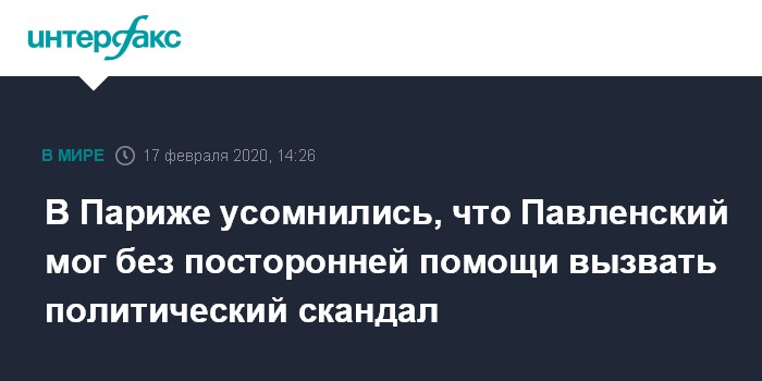 Москва. 17 февраля. INTERFAX.RU - Российский художник-акционист Петр Павленский вряд ли сумел бы в одиночку спровоцировать крупный политический скандал, разразившийся во Франции на прошлой неделе, заявила в понедельник представитель правительства страны Сибет Ндиайе.