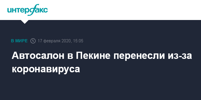 Москва. 17 февраля. INTERFAX.RU - Намечавшийся на апрель пекинский автосалон Auto China отложили на неопределенный срок из-за вспышки коронавируса, сообщают азиатские СМИ.