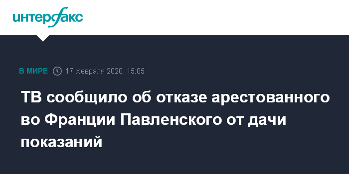 Москва. 17 февраля. INTERFAX.RU -Находящийся под стражей во Франции художник-акционист Петр Павленский не отвечает на вопросы следователей, а его сожительница, напротив, признала часть вины, сообщает телеканал LCI со ссылкой на информированные источники.