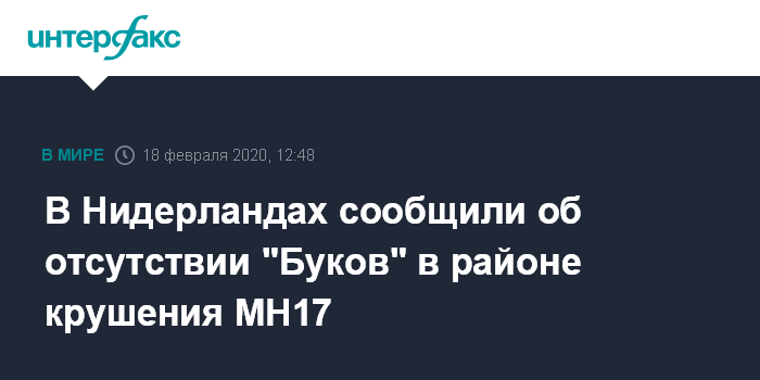 Москва. 18 февраля. INTERFAX.RU - Сотрудники военной разведки Нидерландов в ходе расследования обстоятельств крушения пассажирского самолеты MH17 на востоке Украины в 2014 году собрали данные о позициях ЗРК "Бук" и не обнаружили ни одного комплекса, находившегося достаточно близко, чтобы сбить авиалайнер.