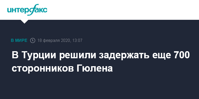 Москва. 18 февраля. INTERFAX.RU - В Турции прокуроры выдали 695 ордеров на задержание подозреваемых сторонников проживающего в США оппозиционного богослова Фетхуллаха Гюлена, которого Анкара обвиняет в организации попытки военного переворота в 2016 году. Об этом сообщает АР со ссылкой на турецкие СМИ.