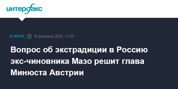Вопрос об экстрадиции в Россию экс-чиновника Мазо решит глава Минюста Австрии