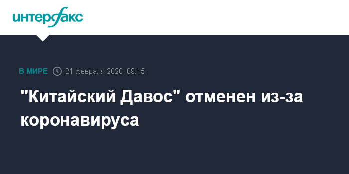 Москва. 21 февраля. INTERFAX.RU - Китай из-за вспышки нового коронавируса отложил намечавшийся в конце марта ежегодный международный экономический форум в Боао на острове Хайнань, известный как "китайский Давос", сообщила South China Morning Post со ссылкой на два информированных источника.