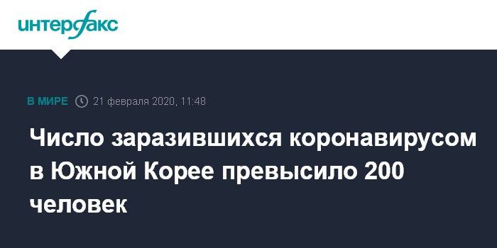 Ранее Сеул сообщал о 156 зараженных новым типом коронавируса из Китая. Кроме того, власти Южной Кореи объявили в пятницу Тэгу (2,4 млн жителей) и еще один город - Чхондо (50 тыс. жителей) - "зонами особого внимания" из-за вспышки Covid-19.