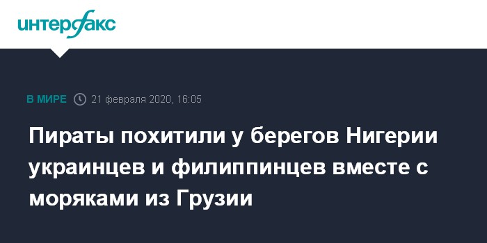 Москва. 21 февраля. INTERFAX.RU - Среди 10 похищенных накануне у берегов Нигерии членов экипажа танкера под флагом Либерии есть не только граждане Грузии, но и граждане Украины и Филиппин, сообщила в пятницу грузинская телекомпания "Рустави-2".