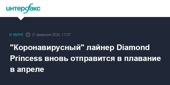 "Более половины случаев заболевания коронавирусом за пределами Китая связаны с Diamond Princess - по последним данным, заразились 634 пассажира из 3,7 тыс., двое погибли. При этом всего за пределами КНР заболело около тысячи человек. Несмотря на это, компания Princess Cruises планирует, что с 29 апреля лайнер будет выполнять круизы в обычном режиме - как раз к празднованию Золотой недели в Японии (несколько праздничных дней в Японии, объединенных с выходными - ИФ)", - пишет портал.