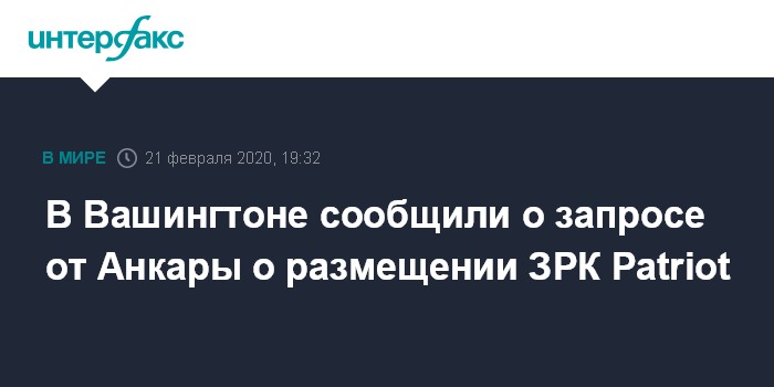 Накануне глава оборонного ведомства Турции Хулуси Акар сообщил, что Вашингтон мог бы обеспечить Анкару ЗРС Patriot в качестве меры поддержки турецких действий в сирийской провинции Идлиб.