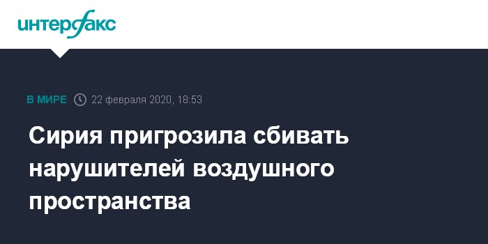 Москва. 22 февраля. INTERFAX.RU - Боевая авиация Сирии и силы ПВО получили приказ уничтожать любые самолеты, которые попытаются вторгнуться в ее воздушное пространство, сообщает в субботу агентство САНА.