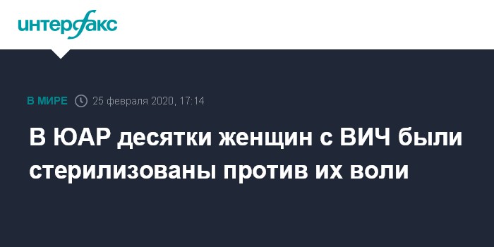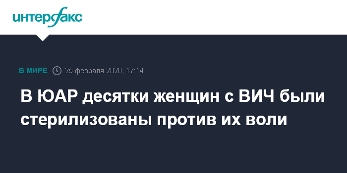 Москва. 25 февраля. INTERFAX.RU - Десятки женщин ВИЧ были принуждены к стерилизации, родив детей в государственных больницах ЮАР, сообщает Associated Press.