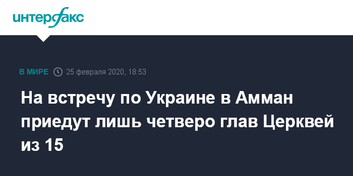 Москва. 25 февраля. INTERFAX.RU - Встреча глав и представителей Православных церквей для обсуждения ситуации вокруг создания новой церкви Украины (ПЦУ) пройдет в среду в Аммане.