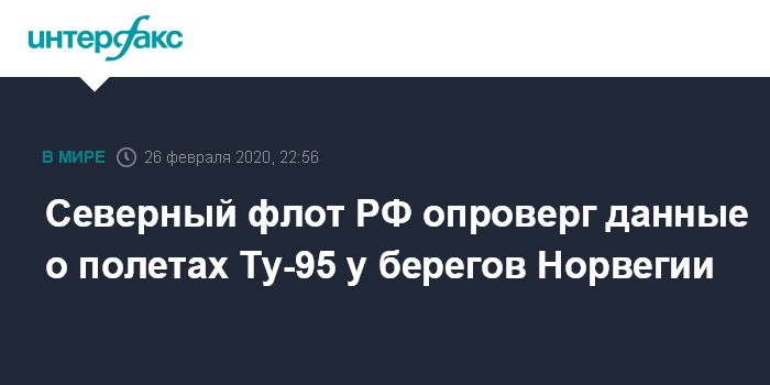 Северный флот РФ опроверг данные о полетах Ту-95 у берегов Норвегии