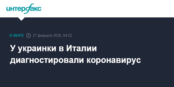 Москва. 27 февраля. INTERFAX.RU - У 26-летней девушки из Украины в Кампании подтвердили заражение коронавирусом COVID-19, сообщает итальянское издание Fanpage.