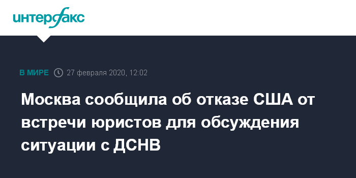 Москва сообщила об отказе США от встречи юристов для обсуждения ситуации с ДСНВ