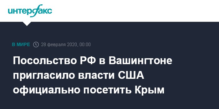 Российские дипломаты заявили, что "готовы принять представителей администрации в официальном статусе в Республике Крым и Севастополе". "Уверены, что после такого визита все озабоченности Вашингтона будут навсегда сняты. Попытки игнорировать либо отвергать общенародное решение на референдуме воспроизведением заезженных штампов об "аннексии" и "оккупации" некорректны и носят искусственный характер", - подчеркнули в российском диппредставительстве.