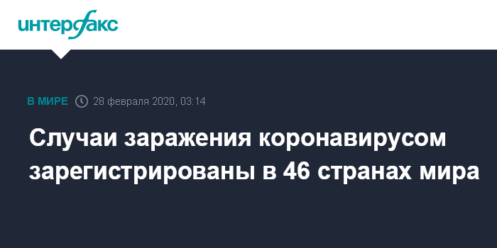 Случаи заражения коронавирусом зарегистрированы в 46 странах мира