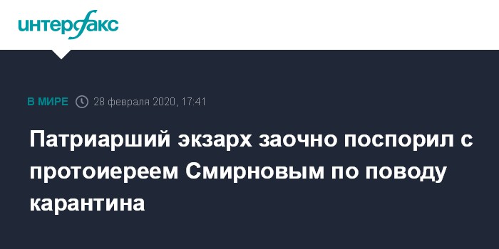 Патриарший экзарх заочно поспорил с протоиереем Смирновым по поводу карантина