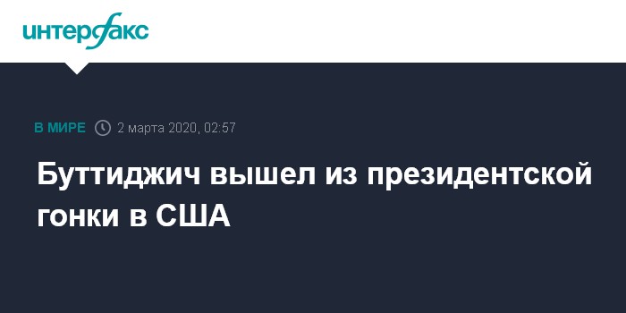 Как заявил помощник Буттиджича, тот принял решение в воскресенье после поражения на праймериз в Южной Каролине, посчитав низкими свои шансы на победу в "супервторник".