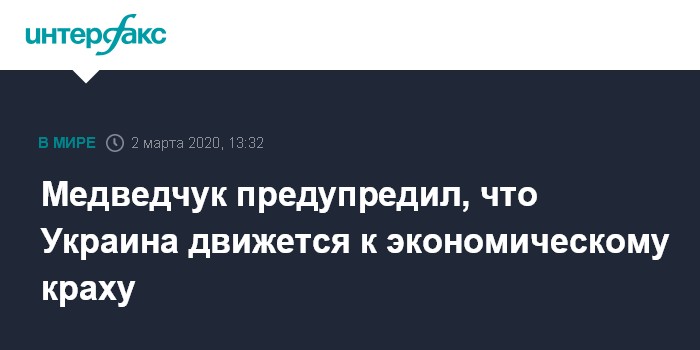 Москва. 2 марта. INTERFAX.RU - Предварительный текст отчета правительства Украины за 2019 год не дает реальной картины того, что происходит в экономике, страна движется к экономическому краху по вине кабмина, считает председатель политсовета партии "Оппозиционная платформа - За жизнь" (ОПЗЖ) Виктор Медведчук.