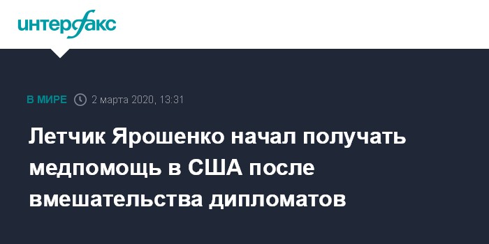 Летчик Ярошенко начал получать медпомощь в США после вмешательства дипломатов