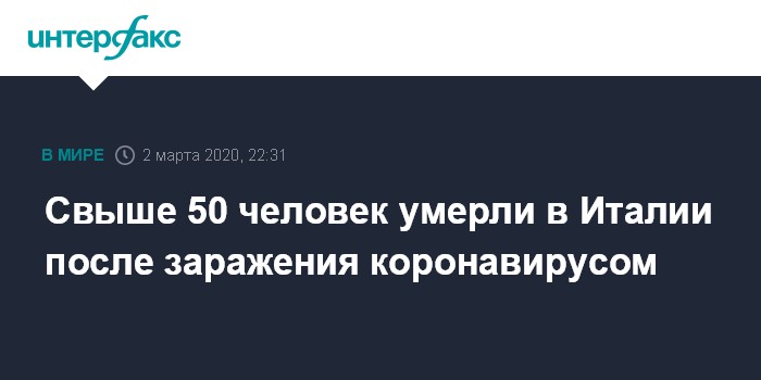 Свыше 50 человек умерли в Италии после заражения коронавирусом