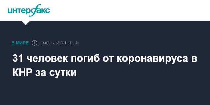 31 человек погиб от коронавируса в КНР за сутки