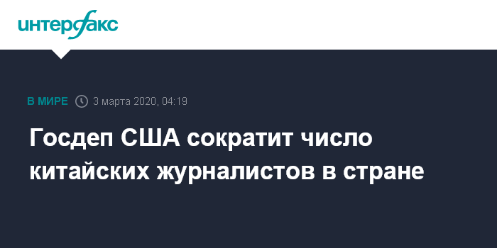 В соответствии с указанием госдепа, с 13 марта число сотрудников государственных китайских СМИ должно быть сокращено со 160 в настоящее время до 100, когда ограничения вступают в силу.